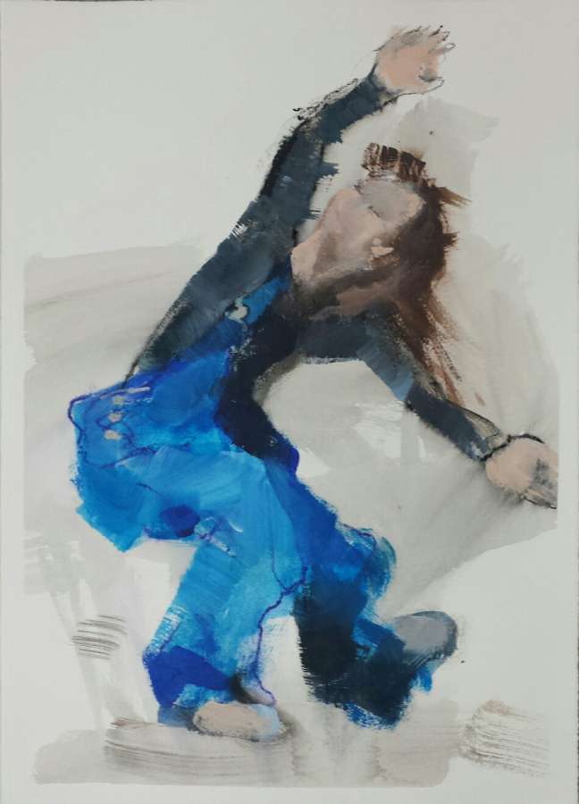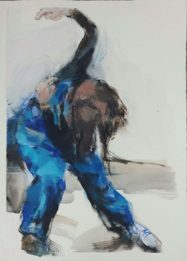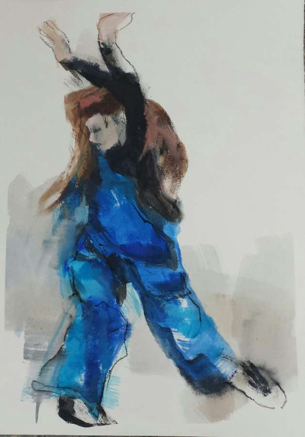 Hier zeigte ich rasche Studien einer Tänzerin. Ich sah sie zufällig, wie sie an einem grauen Tag vor dem Gasteig übte....