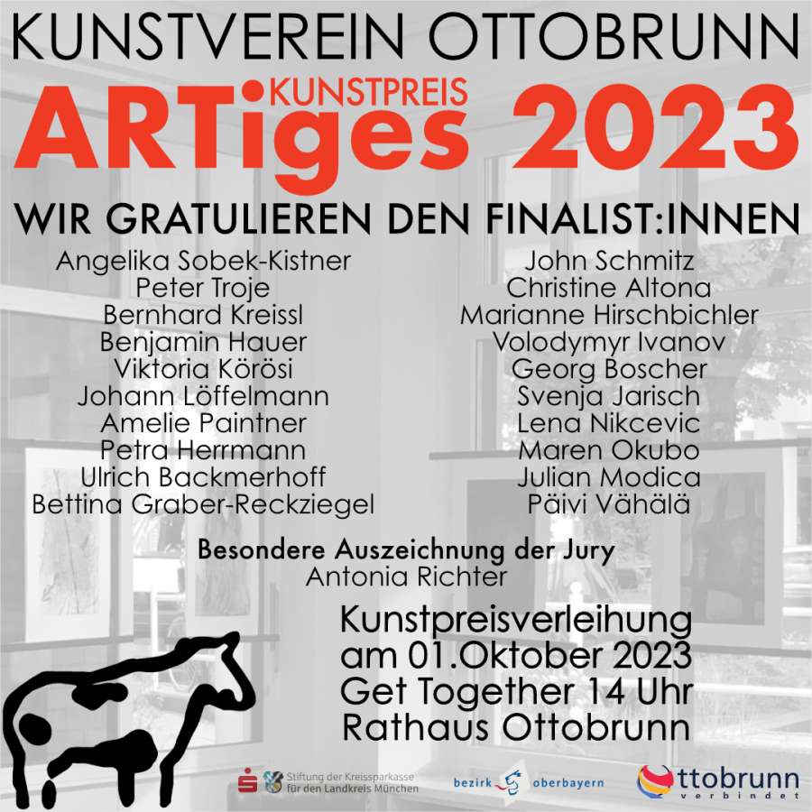 Ich freue mich, bei den Finalisten zur Verleihung des Kunstpreises ARTiges 2023 des Kunstvereins Ottobrunn sein zu dürfen. Zu Sehen sind drei Bilder aus meiner Reihe "Lockdown dances". mehr ➥